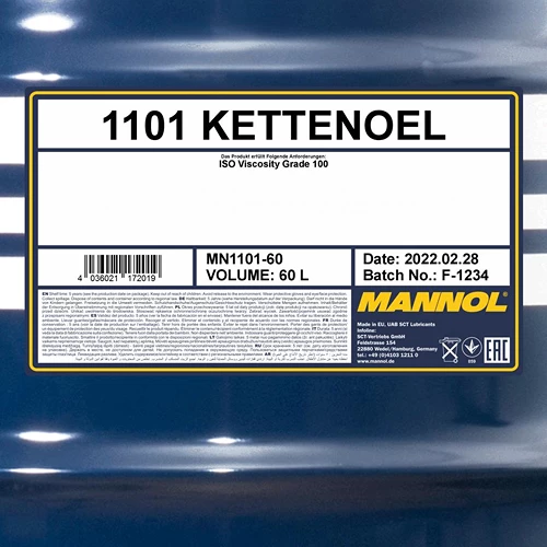 - Hat klebende Eigenschaften, weshalb das Öl bei Betrieb gut an der Kette haftet
