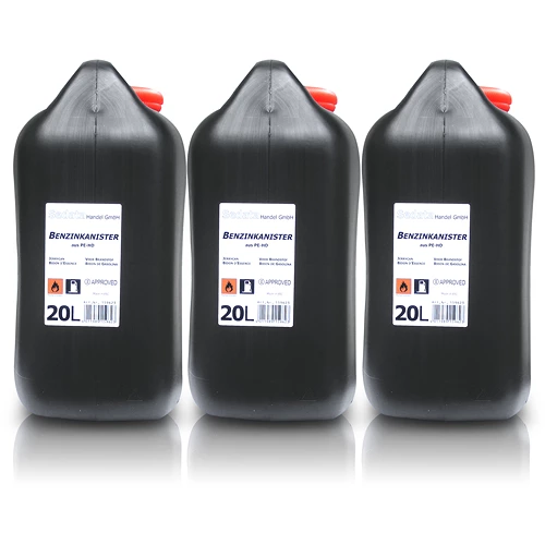 20 ltr. Kanister aus Kunststoff; UN-geprüft mit einem Fassungsvermögen von 20 Liter. Ausgiesser zum aufschrauben für das leichtere einfüllen in den Fahrzeugtank.